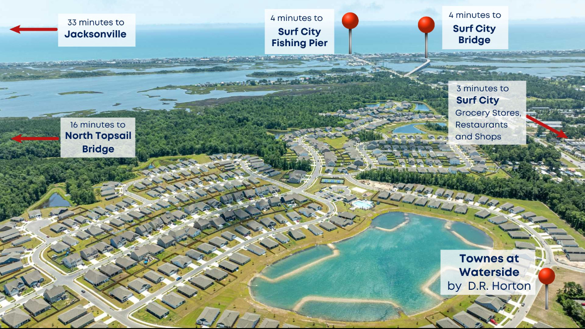 Stand out features are the Instahot hot water, water softener filter and a 2-car garage. Waterside offers amenities such as a swimming pool, clubhouse, fitness room, firepit, playground, multi-sport court, sand volleyball, and walking trails throughout the community. The nearby white sand beaches provide the perfect mix of adventure and relaxation. With a mild climate almost year-round, you can enjoy the warm salty air and everything the area has to offer throughout the year. Located less than a mile from the high-rise bridge, which includes a pedestrian lane offering stunning views of the Atlantic and Intracoastal Waterway. Waterside is ideally positioned for easy access to Wilmington, Jacksonville, Camp Lejeune, and Stone Bay. Dogs are allowed upon owner approval.